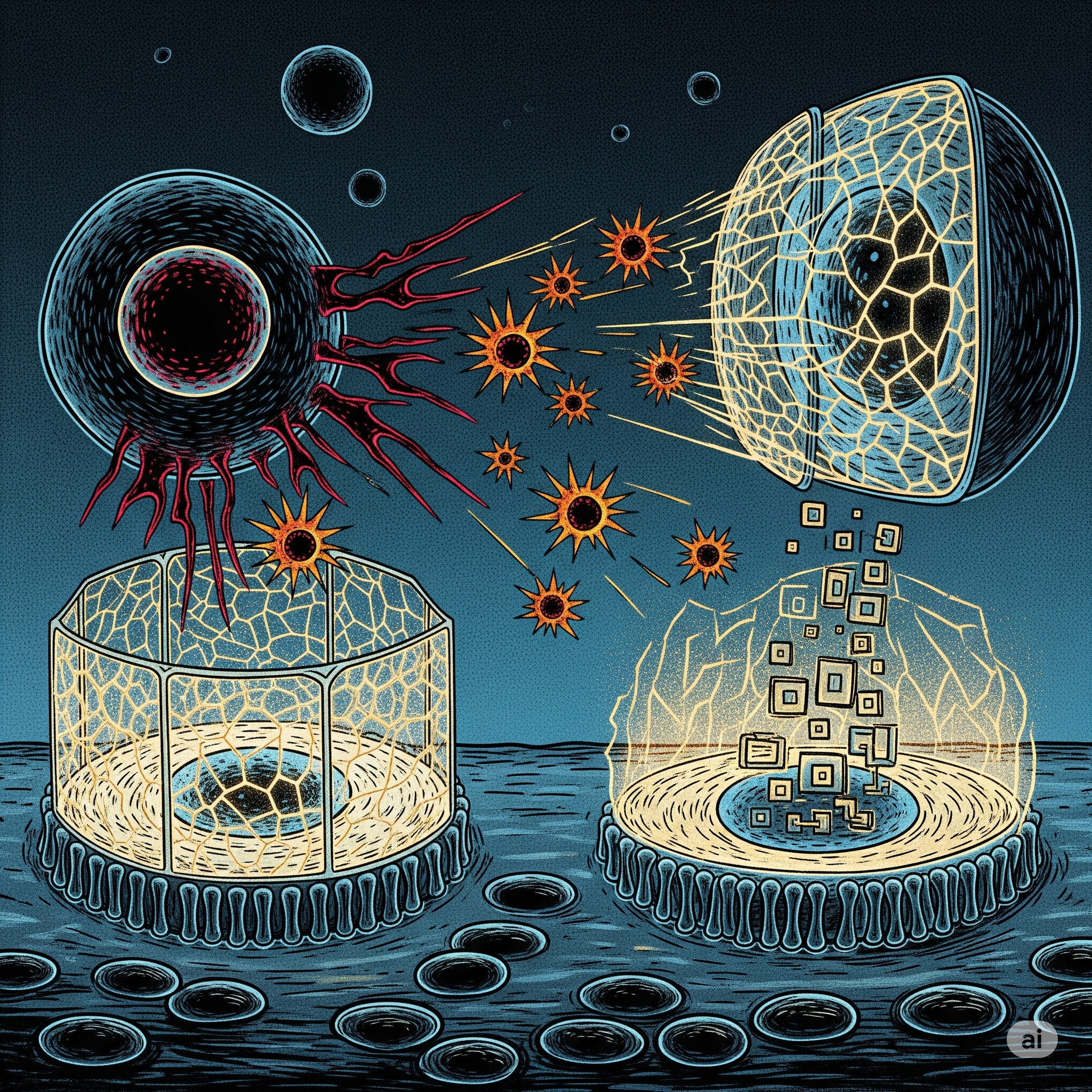 하지만 바이러스도 바보는 아닙니다. 많은 바이러스는 감염된 세포가 MHC Class I '창문'을 만들지 못하도록 방해합니다. 이 경우, 킬러 T 세포는 감염된 세포를 탐지할 수 없게 됩니다. 이때 등장하는 것이 바로 자연 살해 세포(Natural Killer Cell)입니다. 이들은 '창문을 열지 않는 수상한 세포'를 찾아내는 독특한 능력을 가지고 있습니다. 즉, MHC Class I '창문'이 없거나 부족한 세포를 발견하면, 그것이 암세포든 바이러스 감염 세포든 가리지 않고 죽음을 명령합니다. 이는 우리 몸의 '최후의 보루'이자, 면역 시스템의 허점을 보완하는 천재적인 전략입니다.